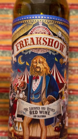 I’m a sucker for cool wine bottle labels. Here are two from the “Freakshow” label.